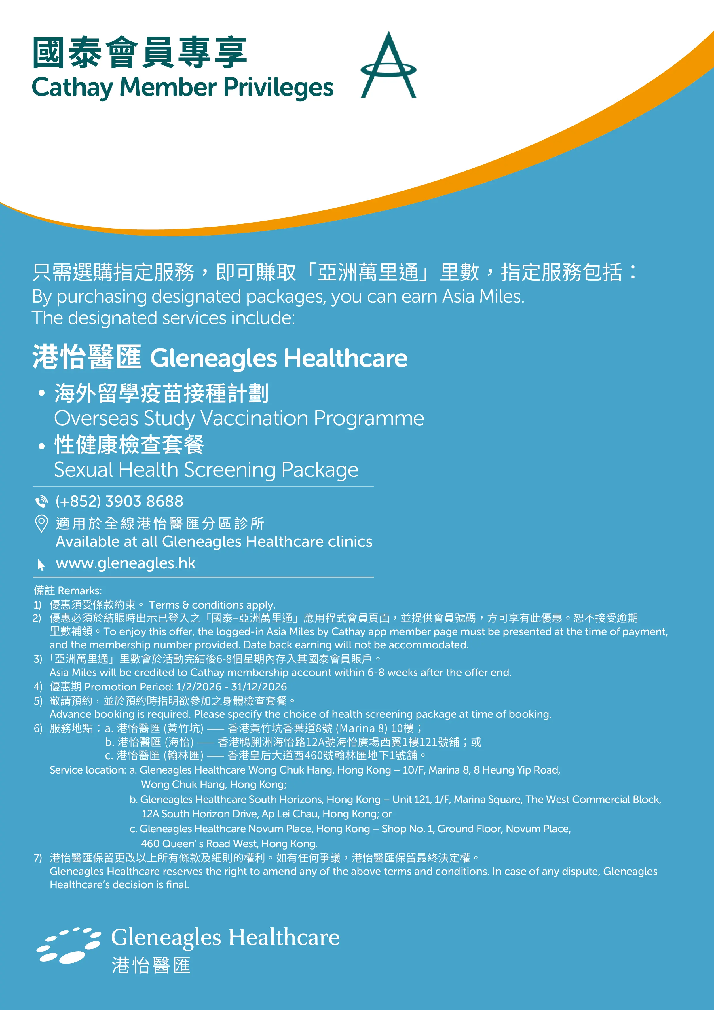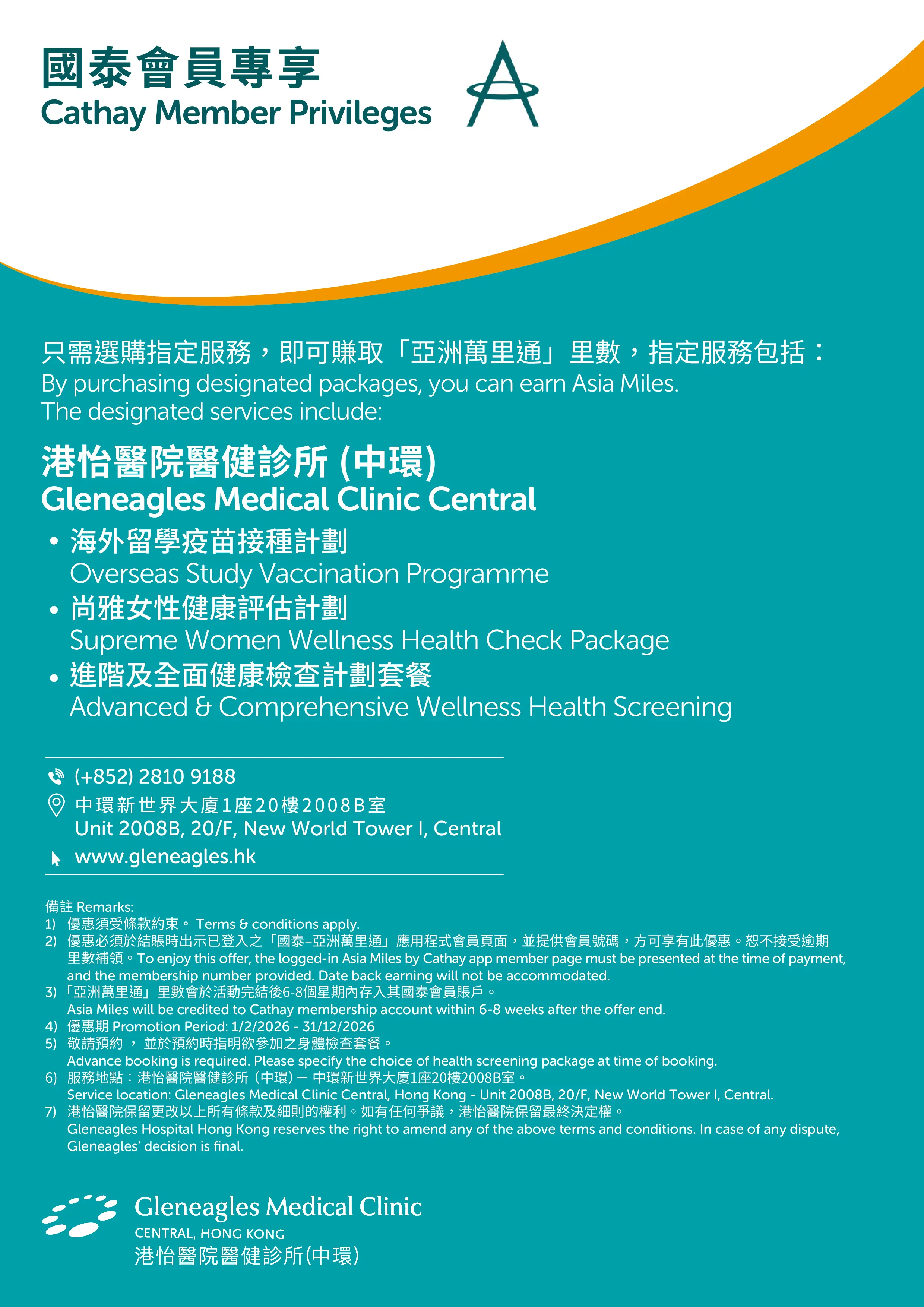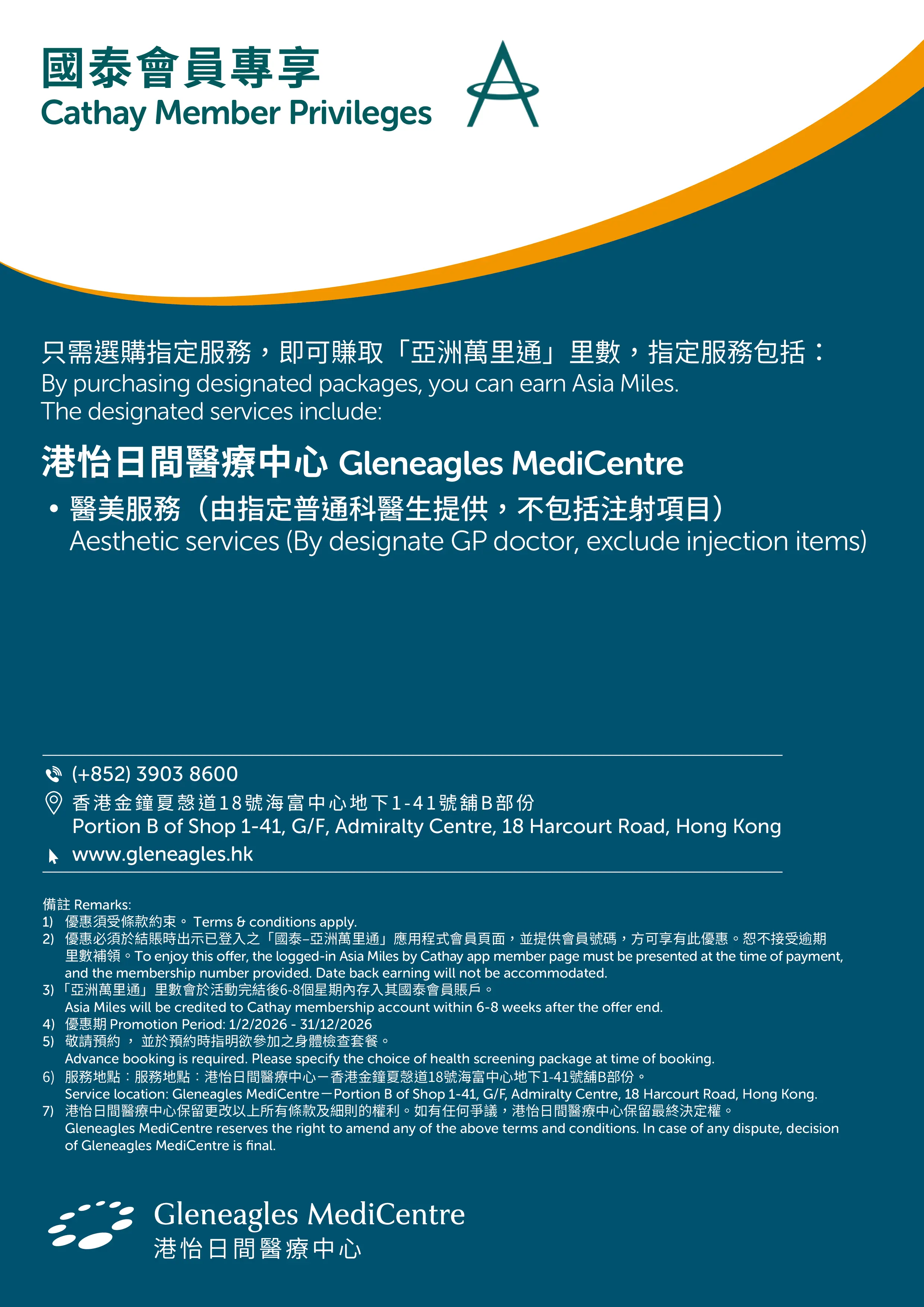 - Asia Miles will be credited to Cathay membership account within 6-8 weeks after the offer end.