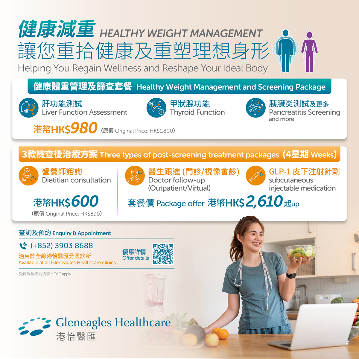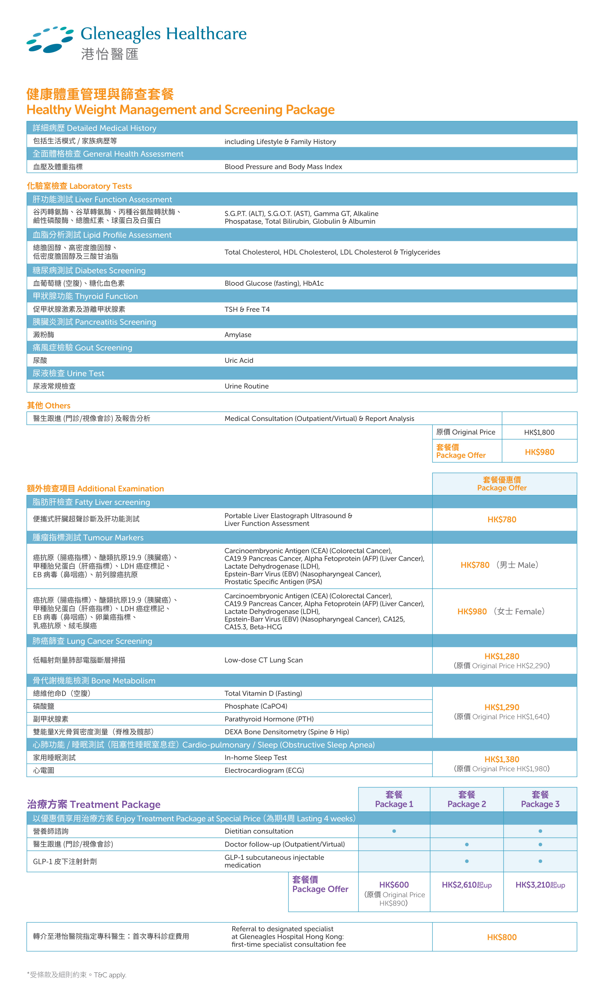 1. a. Healthy Weight Management and Screening Package – Package offer: HK$980 (original price: HK$1,800)