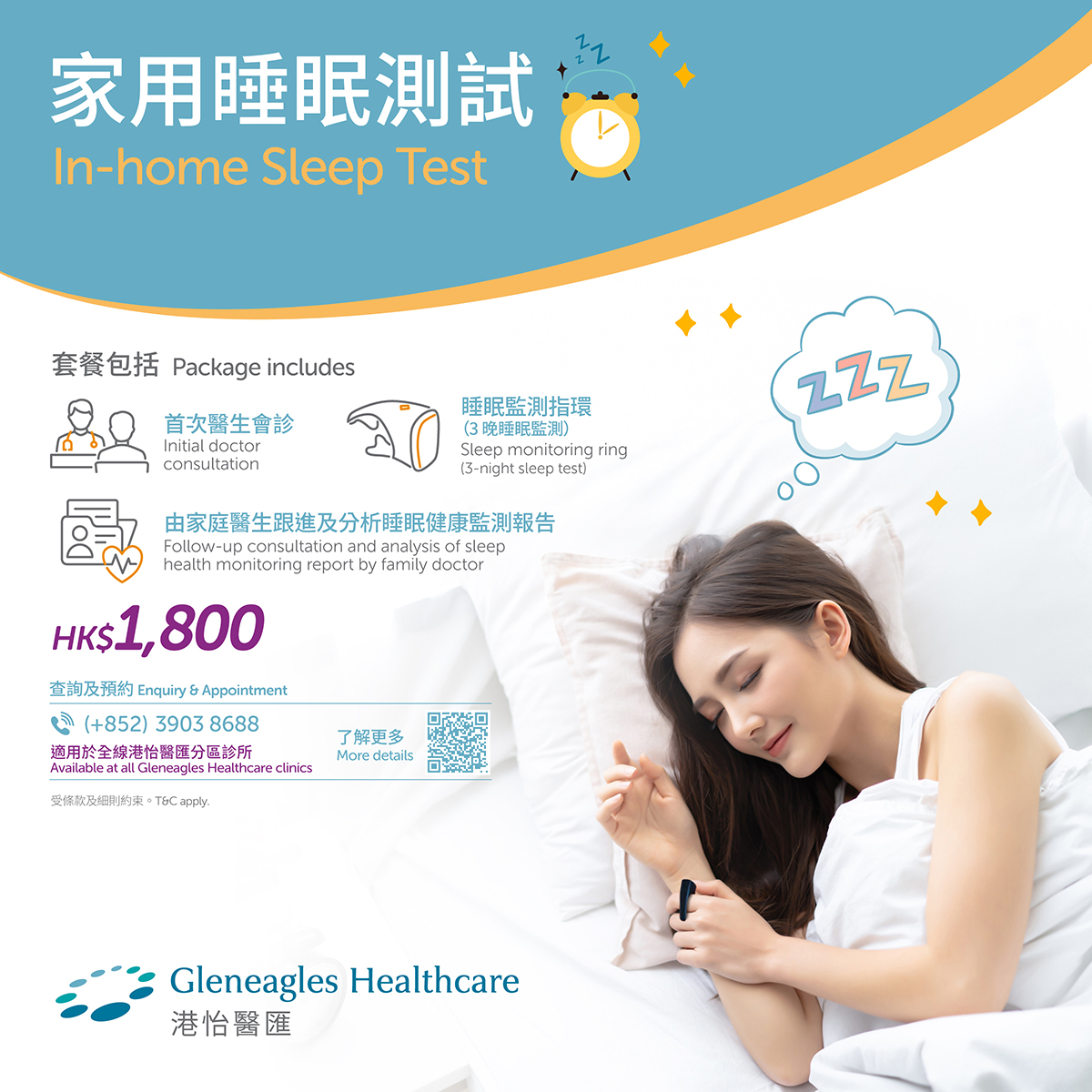 Gleneagles Healthcare launches the In-home Sleep Test Programme with the use of a sleep monitoring ring to help you understand your sleep conditions, identify potential sleep problems such as sleep apnoea, as well as measure your stress level and sleep quality.