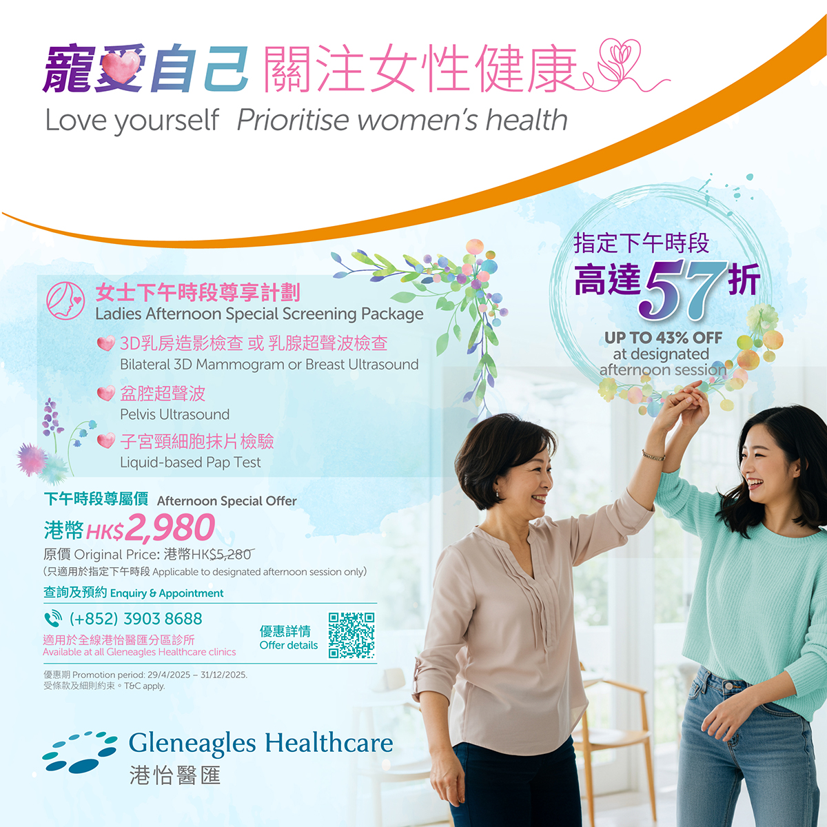 Effective 1 September 2025, the Gleneagles Healthcare clinics (previously named “港怡醫療”) have been renamed “港怡醫匯”. The clinics’ English name remains unchanged.