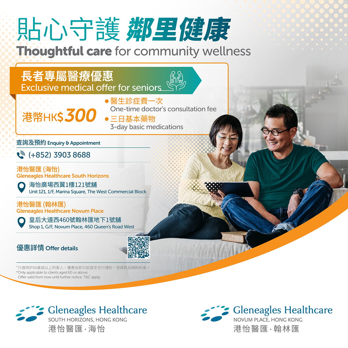 1. 长者专属医疗优惠︰港币$300(包医生诊症费一次及三日基本药物)。