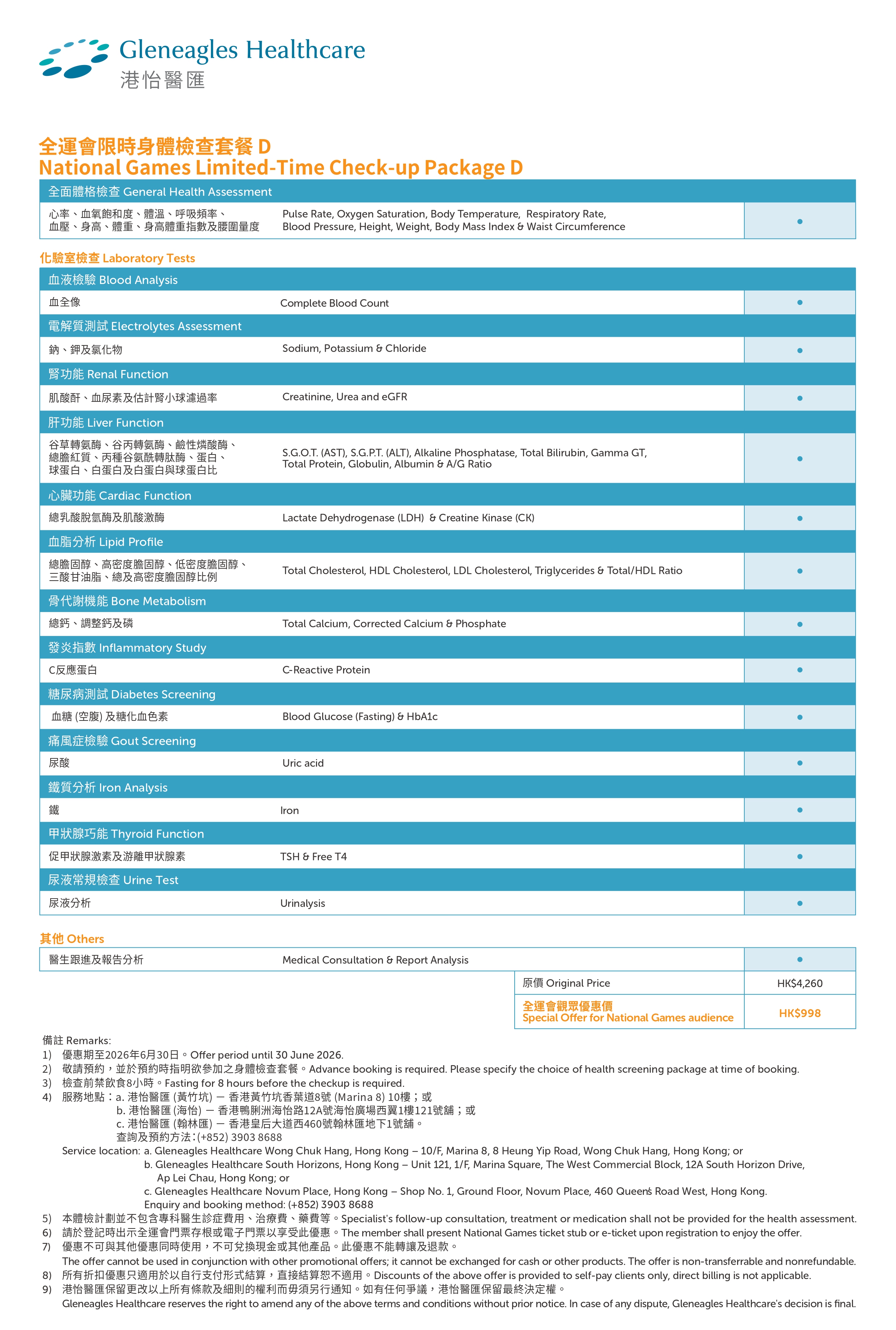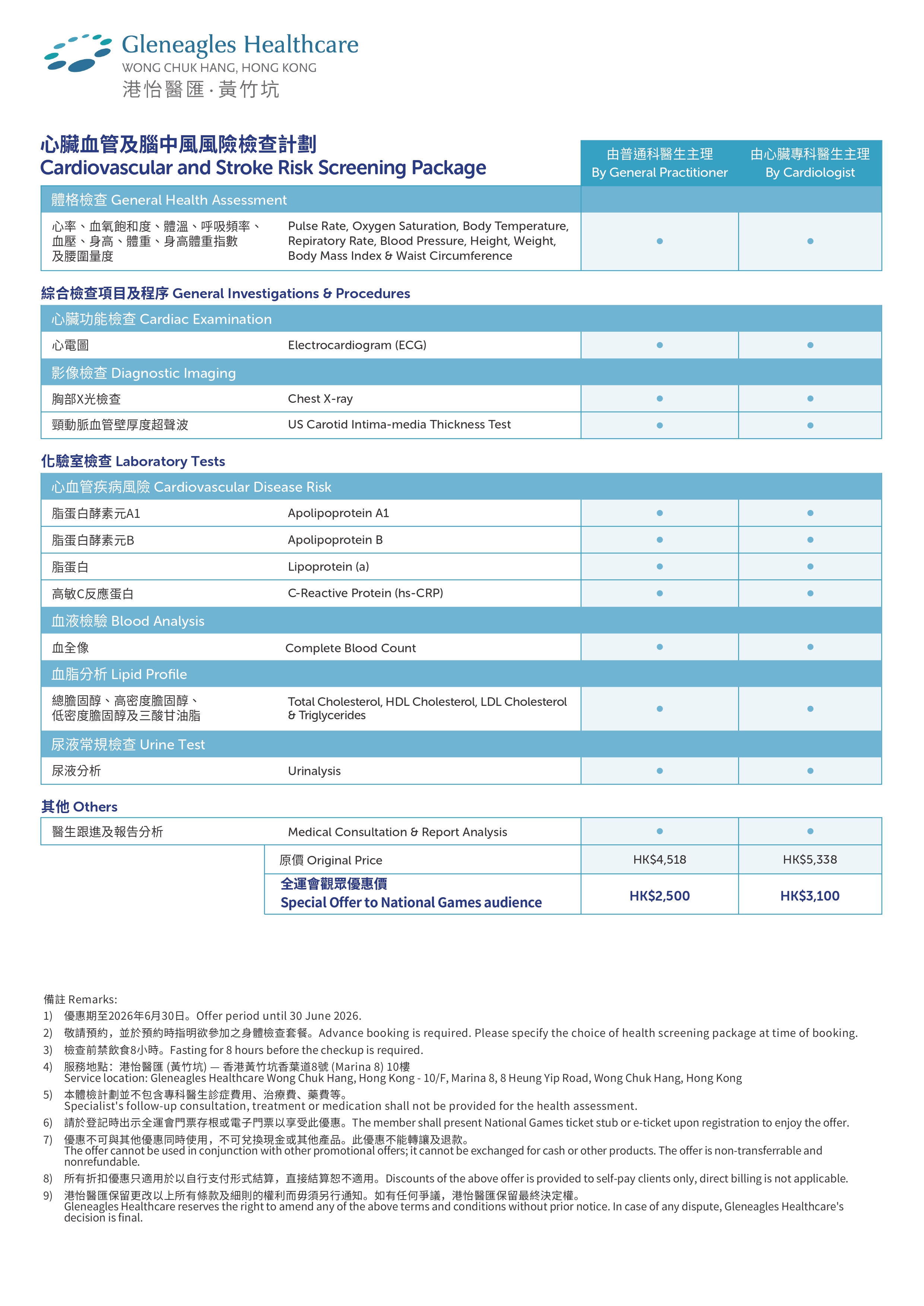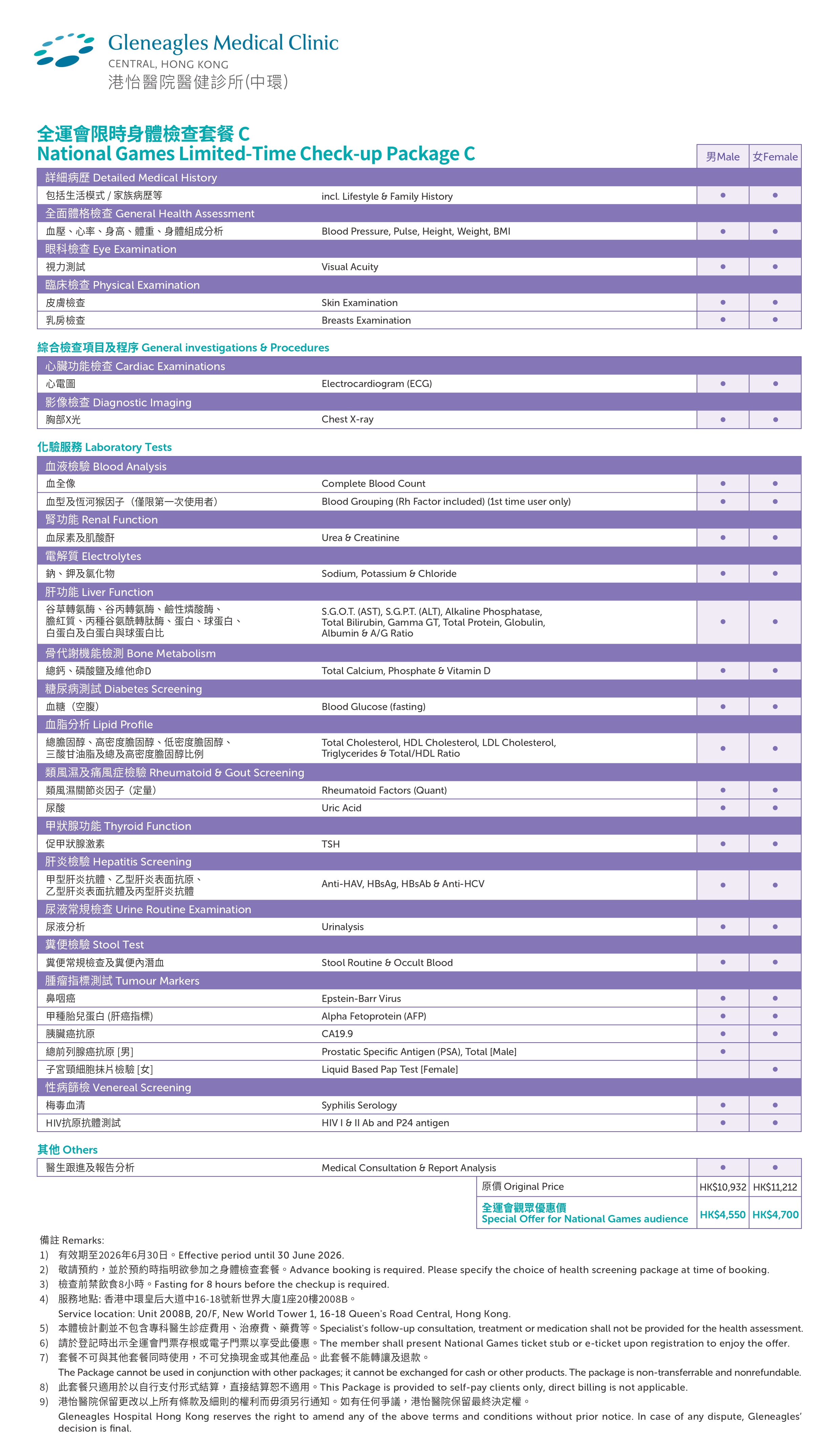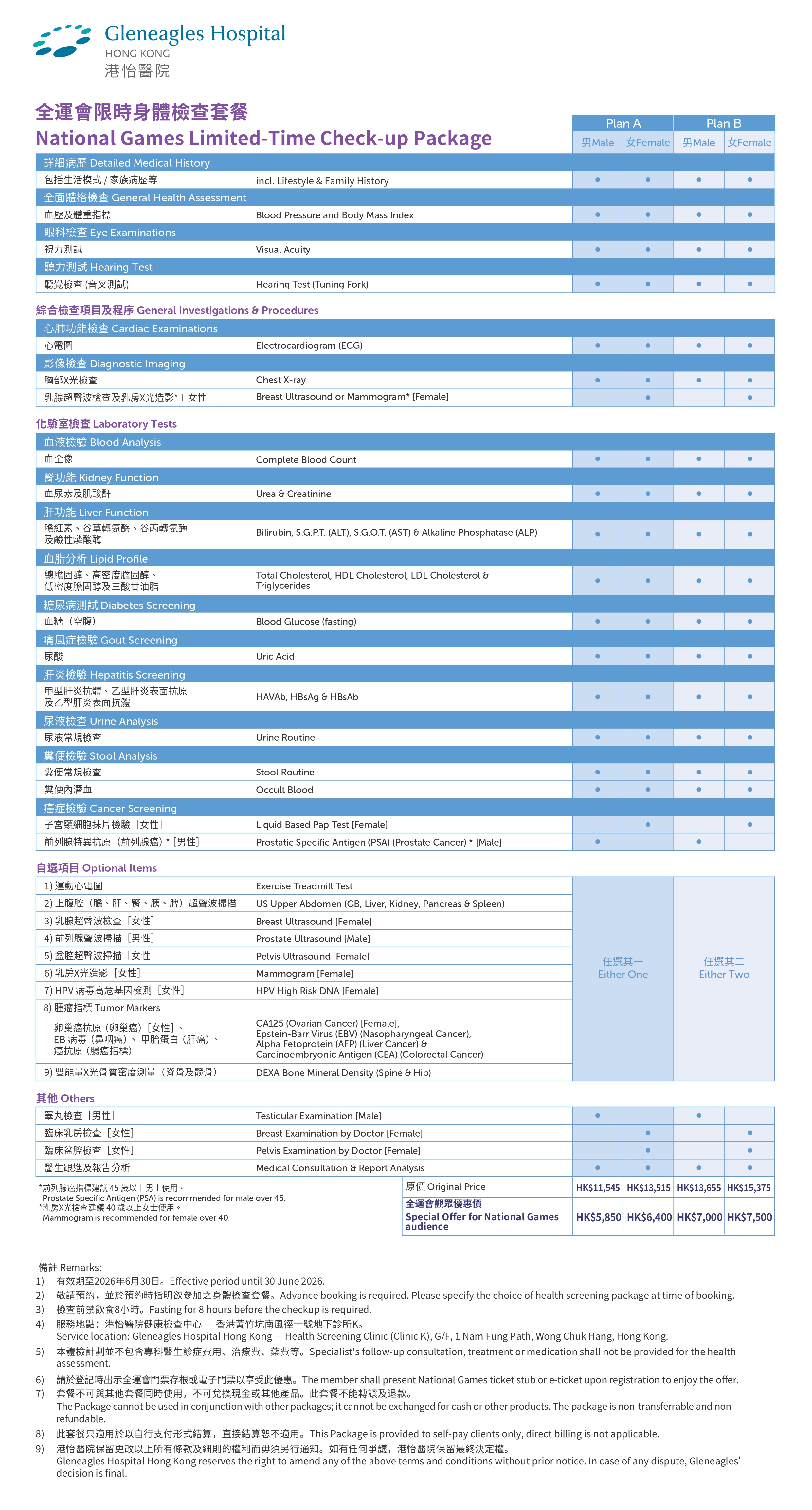 本體檢計劃並不包含專科醫生診症費用、治療費、藥費等。