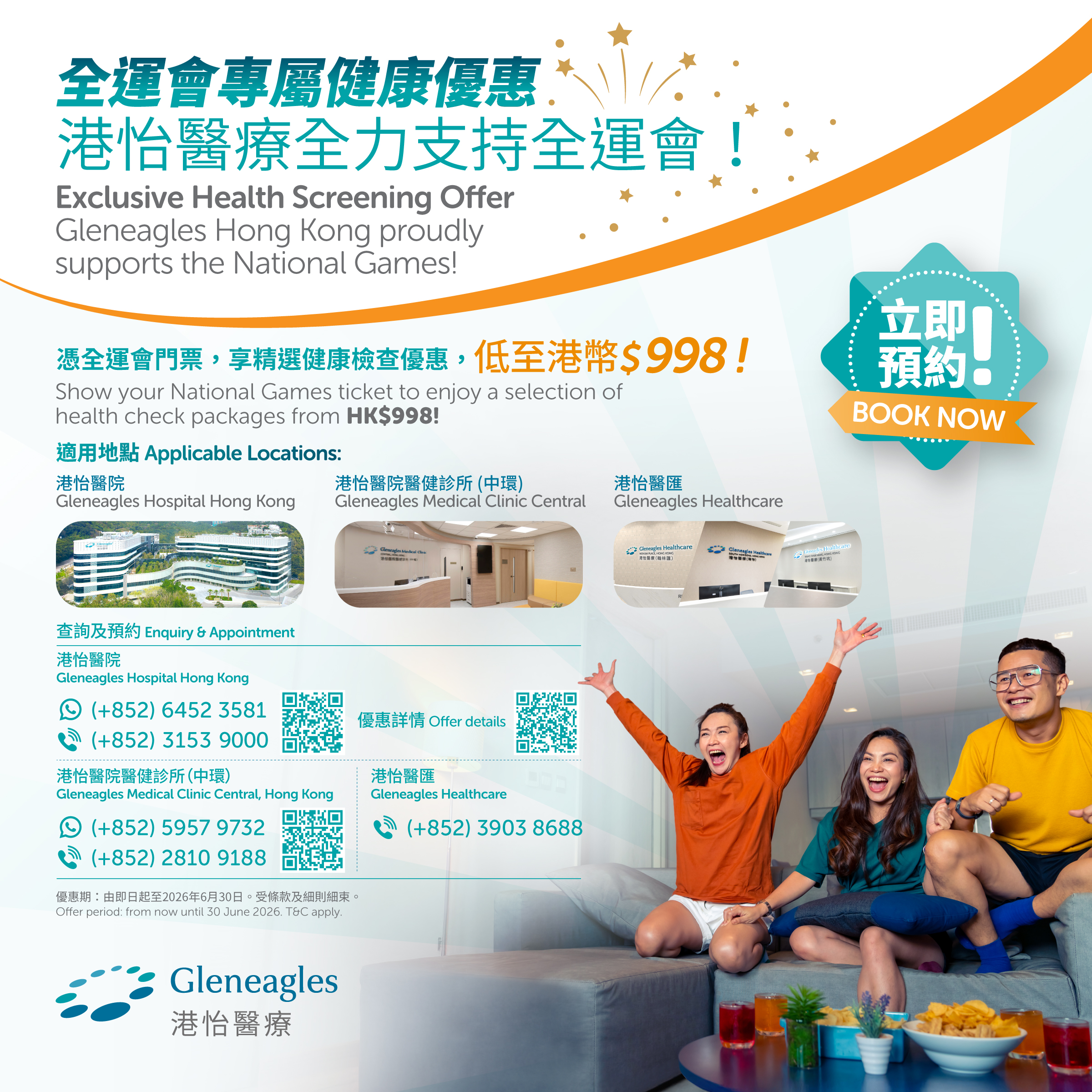自2025年9月1日起,Gleneagles Healthcare診所(前稱「港怡醫療」)已正式更名為「